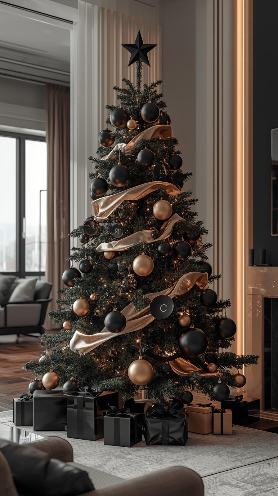 Understated decorations, matte ornaments, and monochromatic palettes define this look. A sparse tree decorated with black, champagne, or muted metallic ornaments appeals to those who prefer sleek, contemporary style.