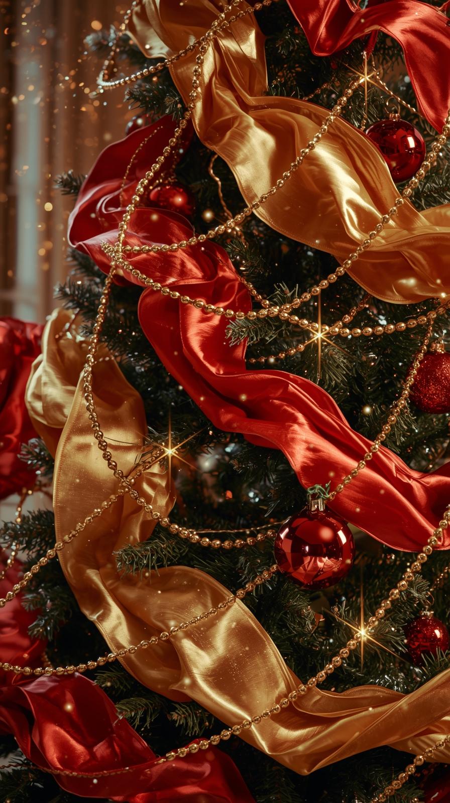 Ribbons in velvet, satin, plaid, or metallic textures add movement and dimension. They can be woven, cascading, or tied into bows throughout the tree. Garlands in metallic beads, cranberries, or wood help reinforce your theme.