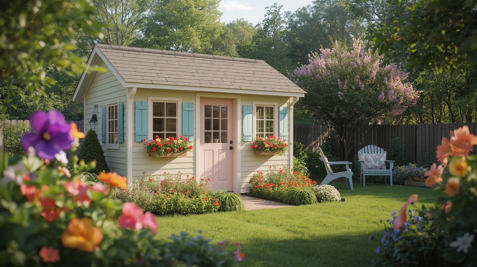 A vintage cottage-style shed brings charm and nostalgia to any backyard. Decorative trims, pastel paint, and classic furniture can create a welcoming outdoor escape.