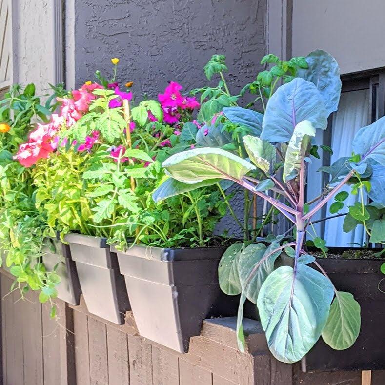 - If sun-facing pick cherry tomatoes + herbs.